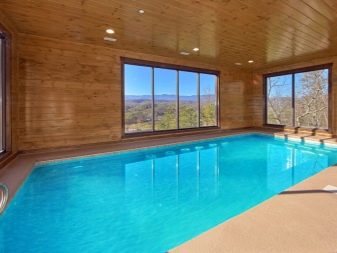 داخل المنزل ، يمكن أن يكون المسبح في الطابق الأرضي ، في الطابق السفلي أو في الطابق السفلي ، وكذلك في الملحق. تم تجهيز خزان مفتوح على سطح الكوخ العامل. ضمن حدود قطعة الأرض الشخصية ، تم بناء أحواض سباحة ثابتة ، والتي يمكن أن تكون مفتوحة ومغلقة. بالإضافة إلى ذلك ، يمارسون نماذج الهيكل السلكي والنماذج القابلة للنفخ..