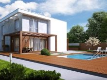 تعتبر المباني ذات الطابقين أكثر ملاءمة لوضع حمام سباحة فيها ، حيث تم تخصيص الغرف السفلية للغرف الفنية ، والطابق العلوي مخصص للسكن. فكر في العديد من مشاريع الأكواخ المكونة من طابقين.