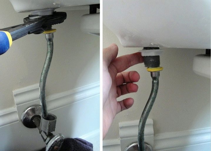 - فحص الكحل الذي تم شراؤه مع تقييم سلامته. إذا كان هناك حتى أدنى شقوق ، فسيتعين عليك وضعها جانبًا والذهاب إلى المتجر للحصول على خرطوم جديد. في المستقبل ، يتطور أي عيب إلى مشكلة خطيرة ، مما يؤدي إلى حقيقة أنه بعد وقت قصير سيتعين عليك التعامل مع استبدال إمدادات المياه إلى المرحاض مرة أخرى.