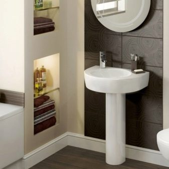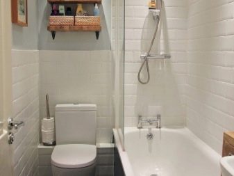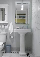 تتطلب اللقطات الصغيرة للحمام في “خروتشوف” وضعًا مدروسًا ومدروسًا للأثاث والأدوات الصحية فيه. لتوفير مساحة من الأفضل استخدام الهياكل المعلقة التي توفر مساحة خالية تحتها. ستعمل خزائن الحائط المدمجة في مكان الرف خلف المرحاض أو فوق الباب الأمامي على توسيع وظائف هذه الغرفة بشكل كبير. من أثاث الأرضيات ، يمكنك استخدام مقلمة ضيقة (مع حمام ومرحاض مدمجين).