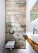 يمكنك اختيار دهانات الأكريليك والأساس المائي لطلاء الجدران.. يمكن أن يكون البلاط الموجود على الجدران أحادي اللون أو يحتوي على مزيج من عدة درجات من نفس اللون ، وسطح لامع أملس يوسع المساحة. في غرفة المرحاض المعزولة عن حوض الاستحمام ، يمكن استخدام حتى ورق الحائط غير المنسوج المقاوم للرطوبة بألوان مبهجة بنمط غير ظاهر كزخرفة للجدران.