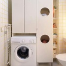 حمام مع غسالة – غرفة متعددة الوظائف. مع لقطات صغيرة لجميع الغرف والمباني في شقة “خروتشوف” ، يمكن وضع غسالة ملابس فقط في الحمام. يجب أن تكون الماكينة صغيرة الحجم وضيقة جدًا ومحملة من الأمام. لا يوجد مكان لسيارة أكبر في حمام “خروتشوف”. اعتمادًا على مكان وجود الحمام والمغسلة ، يتم تحديد مكان وضع الغسالة. عادة ما يتم وضعها ببساطة على طول الجدار المقابل..