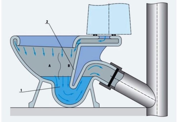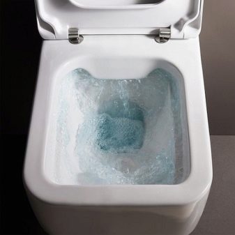تحتوي المراحيض المزودة بنظام مضاد للرش تصميم استنزاف خاص. لديهم عدة مرات أقل مقارنة بالنماذج الكلاسيكية. موقعه محدد أيضًا – مع إزاحة عن المركز. يمكن نقل الصرف إلى الأمام ، والعكس بالعكس ، إلى الجدار الخلفي. يتم منع الرش الذي يظهر أثناء التنظيف بواسطة الحاجب ، ويسمى أيضًا الرف.