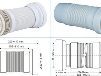 جميع المنتجات المموجة موحدة. إذن ، سيكون الطول 21.2 سم في الحالة المضغوطة ، وفي حالة التمدد 32 سم ، وهذا تمويج قصير. يبلغ طول الأنبوب الطويل 28.5 سم في الحالة المضغوطة و 50 سم في حالة التمدد ، وإذا تبين بعد إجراء الحسابات أن المنتج القصير يحتاج إلى الشد بقوة حتى يتم تثبيته في نظام الصرف الصحي ، يستحق شراء الخيار الثاني.
