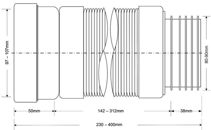 إن أنبوب المرحاض المتصل هذا مرن ، لكنه في نفس الوقت يظهر مقاومة عالية للإجهاد الميكانيكي..