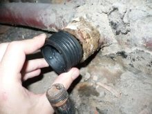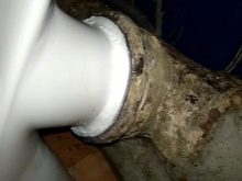 يحدث أحيانًا أن تكون الفجوة قد تشكلت بمرور الوقت بسبب الانحراف. في هذه الحالة ، يتسرب الأنبوب أيضًا. تم حل المشكلة بنفس الطريقة الموضحة أعلاه. ولكن عندما يتم شد التمويج ، فمن الأفضل إعادة ترتيبه. يُنصح باستخدام منتج جديد ، وليس تقصير المنتج القديم ، لأن عمر هذا الأنبوب قصير. يحدث أيضًا أنه عندما يتشكل الانسداد ، يزداد الحمل ، وبالتالي يتدفق نظام الصرف الصحي. تحتاج فقط إلى تنظيف النظام. إذا كان هناك الكثير من الانحناء في القسم ، فمن المستحسن إزالته وإعادة ترتيب الأنابيب.