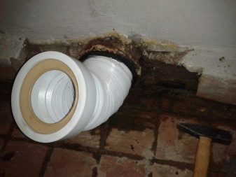 أحد عيوب هذا النوع من التصريف هو عليك أن تعرف بالضبط قبل البدء في تركيب التمويج المسافة بين المجاري والمرحاض. حتى الاختلاف الطفيف سيؤدي إلى الانحراف. بعد ذلك ، سوف يتم إرخاء المرحاض ، وسوف ينهار مانع التسرب ، وسيظهر تسرب.