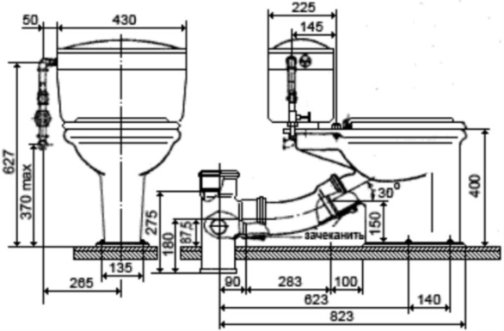 هذه نسخة قديمة لا تزال مستخدمة على نطاق واسع في المنازل حتى يومنا هذا. قطر الاتصالات لا يتغير. ليس من الصعب التقاط المكونات في المتجر.. هناك ميزة أخرى لمراحيض التدفق المائلة – فهي قابلة للتبديل مع تركيبات السباكة التي لها منفذ مباشر. ولكن بالنسبة للتركيبات ، قد يختلف حجمها في كل حالة على حدة..