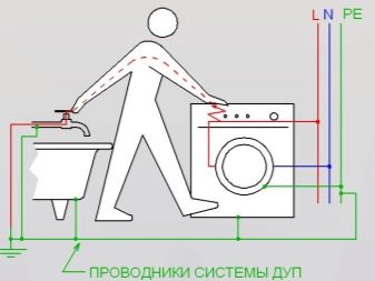 بالإضافة إلى ذلك ، تعمل وحدة الغسيل في ظروف الرطوبة العالية. في هذه الحالة ، يكون تسريب التيار الكهربائي (على سبيل المثال ، من خلال علبة معدنية) حقيقيًا تمامًا..