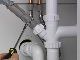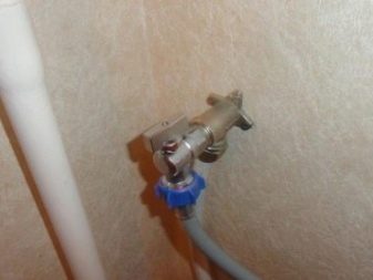 - خرطوم يتصل بفرع منفصل مباشرة إلى الناهض أو إلى نقطة الإنطلاق. يُسمح بالاتصال بالسيفون الموجود أسفل المغسلة. المهمة الرئيسية هي منع الخرطوم من السقوط تحت 50 سم فوق الأرض.