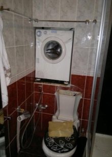 عندما لا يسمح تصميم وأبعاد الحمام المزود بحمام وغسالة بتثبيت المعدات على الأرض ، يبقى تثبيتها فوق المرحاض. وسوف يساعد على القيام بذلك التسلسل التالي من الإجراءات.