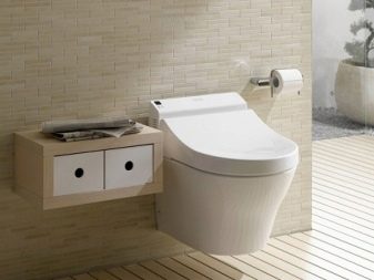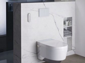 حسب نوع التركيب ، تنقسم المراحيض “الذكية” إلى نماذج معلقة وأرضية.