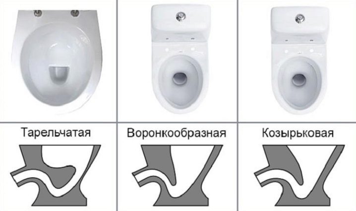 - على شكل قرص – يتم أيضًا إزاحة الصرف للأمام ، لكن الجدار الخلفي أفقي ؛