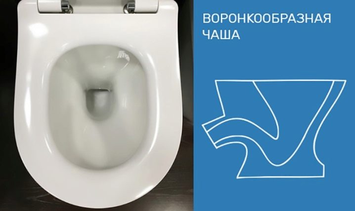 على شكل قمع لها تصميم مماثل لنماذج الحاجب. يقع قمع الصرف في نقطة مركز الوعاء. تشمل مزايا هذا التكوين التنظيف السهل – فسرعان ما ينتهي الأمر بمخلفات النفايات في المجاري. يرتبط الجانب السلبي بالكثير من الرش.