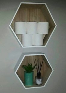الأمر نفسه ينطبق على تلك الحالات التي تبدو فيها الأرفف العريضة غير مناسبة في مساحة صغيرة.. تبدو الأرفف ذات الأشكال غير المعتادة مفيدة – على سبيل المثال ، في شكل أقراص العسل أو الدوائر ذات العارضة.