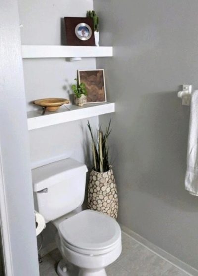 لإنشاء رف فوق المرحاض بيديك, يمكنك أن تأخذ تصميم الرف العادي كأساس ولا تقم ببساطة بتثبيت أرفف سفلية عليه.