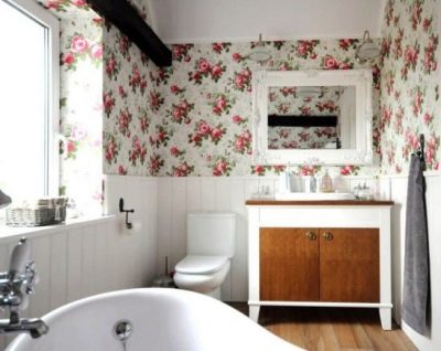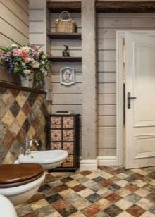 يساهم أسلوب البلد في خلق بيئة مريحة. الأثاث في مثل هذه التصميمات الداخلية بسيط ، وعادة ما يتم اختيار البلاط في قفص. تستخدم المنسوجات ذات الزخارف الزهرية الكبيرة لتزيين الغرفة. يغلب على الزخرفة ظلال من اللون الأخضر والأزرق. يجب أن يكون الأثاث والسباكة بجودة عالية ، فهذه هي الطريقة الوحيدة لخلق بيئة مريحة.