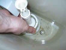 - لا يستنزف الماء في المرحاض. إذا كان خزان التصريف ممتلئًا ، وكانت آلية التحرير ذات شوط حر ، فهذا يعني وجود عطل في صمام الإغلاق. إذا لم يتدفق الماء على الإطلاق ، فمن المحتمل أن يكون ذلك بسبب انسداد المرشح الموجود في مدخل الخزان..
