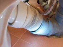إذا لوحظ وجود بركة خلف المرحاض ، قم بفك نظام الصرف واستبدال الأصفاد المطاطية ، وكذلك الخرطوم المموج. بعد تثبيت الأجهزة الجديدة ، قم بإغلاق الوصلات باستخدام مادة مانعة للتسرب..