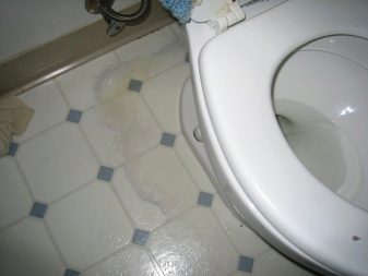 يمكن أن يحدث مثل هذا الإزعاج عندما تتآكل المنتجات المطاطية المثبتة بين الخزان ووعاء المرحاض. إذا كانت هناك بركة مياه خلف الأدوات الصحية ، فيجب البحث عن التسرب في مفاصل عناصر التزاوج – خرطوم مموج ، وكفة ، وتصريف المجاري ، وصرف حوض المرحاض.