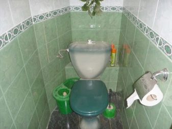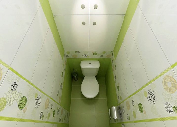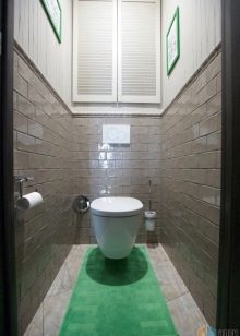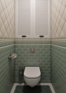 - إذا كنت تبحث عن مواد تشطيب لمرحاض صغير جدًا ، فيمكنك التوقف عند بلاط مستطيل باللون الأخضر الفاتح والأبيض. على عناصر الزخرفة ، قد تكون الأنماط الهندسية موجودة بكميات صغيرة. يجب أن تكون أرضية الحمام مغطاة بالبلاط الأخضر بالكامل..
