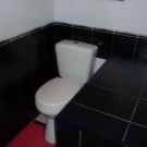 - أسود. غير مناسب لحمام صغير جدًا. يمكن دمجه مع البلاط الأبيض. مناسب للأسلوب الحديث.