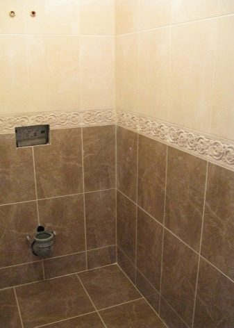 - مناسب للحمامات الكلاسيكية 2 مستوى التشطيب. يتم تمييز الحد بين الأعلى والأسفل بحد.