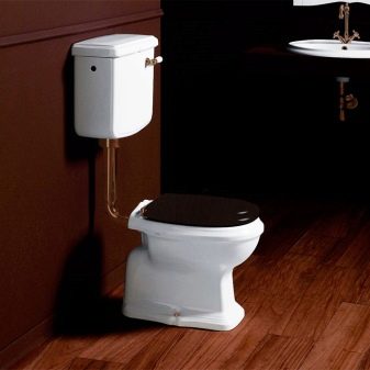 خلاف ذلك ، فإن الخزان في البداية تعلق على المرحاض, إنهم يشكلون مجموعة واحدة يتم تثبيتها معًا بواسطة حوامل خاصة بهم ، وليس أي خطافات حائط. يفترض هذا التصميم بداهة أن الخزان صغير نسبيًا ، حتى لا ينتج عنه حمل غير ضروري وتفوق وزنه على المرحاض ، وهو أساسه..