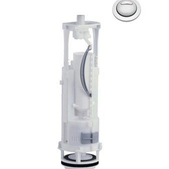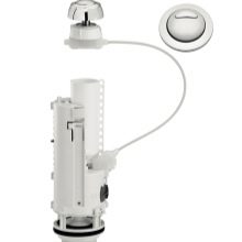 حتى الآن ، الرائد الذي لا شك فيه في طريقة تصريف المياه هو زر عادي موجود على غطاء الخزان. إذا كان الأخير مخفيًا بجدار زائف ، فسيتم عرض مثل هذا الزر ، عن طريق الحيل الهندسية البسيطة ، مباشرة على سطح الجدار الزائف. في هذه الحالة ، يمكن أن يكون الزر إما فرديًا ، أي متكامل أو مزدوج. في الحالة الأولى ، بالضغط على الزر ، يتم دائمًا تفريغ محتويات الخزان بالكامل..