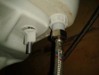 - تحتوي المجموعة الخارجية على خيط ؛ بعد توصيل الخزان نفسه ، يتم توصيل خرطوم إمداد المياه المرن به.