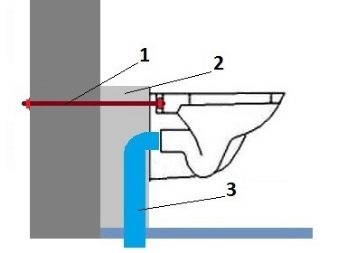 في حالة وجود جدار ذاتي الدعم (أو حتى قسم داخلي) ، يتم استخدام تركيب هيكل ناتئ ونظام تفريغ الضغط باستخدام التثبيت. سيكون إطار التثبيت هو نفسه بالنسبة لمرحاض الصهريج. لكن مجموعة التثبيت لها اختلافات كبيرة: جهاز تصريف آخر ، قوس متصل بالإطار ، طول كوع التصريف. لكن تثبيت الوعاء ، مخرج الصرف هو نفسه.