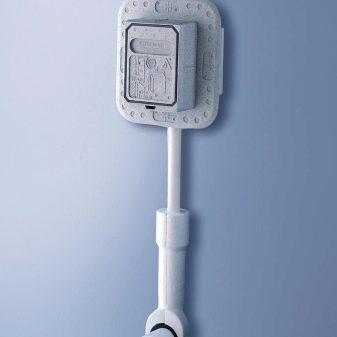 وهناك أيضًا نماذج مرفقة قد تشير إلى نوع الأرضية. ما يميزهم هو طريقة تركيب Drukspühler: يجب أن يكون مسورًا حرفيًا في مكانه. أو ، كخيار ، قم بإصلاحه على الحائط وخياطة هذا المكان باستخدام دريوال.