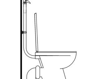 - يمكن توصيل Drukspühler بإمدادات المياه. يتم قطع أنبوب التصريف بحيث يكون أقصر بمقدار 20 مم من جسم الجهاز. يتم وضع الأنبوب في وعاء المرحاض بالركبة.
