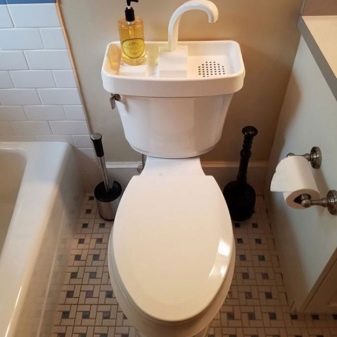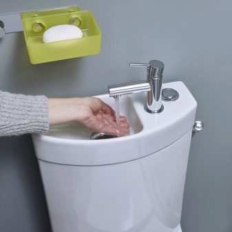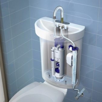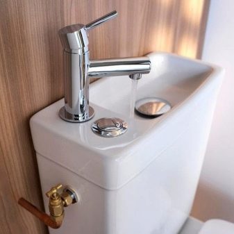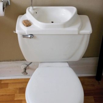 من المهم ملاحظة أن خزان المرحاض المركب ممتلئ دائمًا بالماء.. في الوقت نفسه ، اعتمادًا على احتياجات المستخدم ومن خلال تشغيل جهاز فائض مصمم خصيصًا ، يمكن أن تدخل المياه النظيفة إلى كل من الصنبور ووعاء المرحاض. ومع ذلك ، يجب ألا يغيب عن البال أن ملء الخزان يتم ليس فقط عندما يغسل المستخدم يديه ، ولكن أيضًا بالطريقة التقليدية..