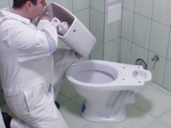 بالإضافة إلى السحابات والثقوب للرسو معهم ، تم تجهيز الخزان أيضًا أنبوب مع طوقا من المطاط, أداء وظيفة الختم. يوجد أيضًا فتحة في رف المرحاض للتوصيل بهذا الجزء. كما ذكرنا سابقًا ، قبل فصل خزان المياه عن رف المرحاض, من الضروري صرف تجويف الخزان بالكامل مسبقًا, من ثم قم بفك صمام الحشو وصواميل التثبيت, بعد ذلك أصبح من الممكن بالفعل رفع خزان المياه وببعض الجهد فصل له.