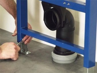 يعتبر هذا الخيار أسهل في التثبيت. تركيب الإطار مثبت في الأرضية. يتم استخدام هذا التثبيت في حالة عدم وجود جدار مناسب. تتضمن ميزات هيكل الإطار تعديل ارتفاع المرحاض المعلق على الحائط في حدود 20 سم باستخدام أرجل قابلة للتعديل.