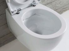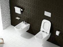 - قابلية التصنيع. كقاعدة عامة ، تم تجهيز الطرز بعدد كبير من الوظائف ، من أشهرها مقاومة الرذاذ ، والحماية من العفن والرطوبة ، وكذلك الشطف السلس. في الوقت نفسه ، تتمتع مجموعة مراحيض الحمام أيضًا بمزايا تكنولوجية أخرى تكمن في مادة التنفيذ وخصائصها. غالبًا ما يكون من البورسلين ، وهو مقاوم للمواد الكيميائية ويحمي المعدات من التلف المادي. وهناك أيضًا مراحيض بوظيفة بيديه.