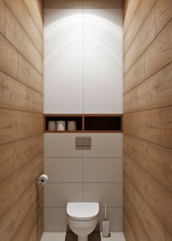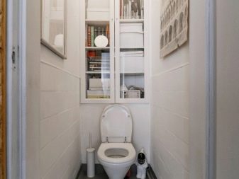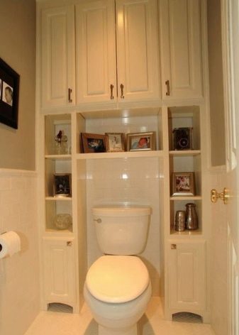 في المرحاض ، يتم تثبيت الخزانات حسب حجم الهيكل نفسه وشكله والغرض منه. من المهم مراعاة حجم الغرفة والطراز الذي صنعت به..