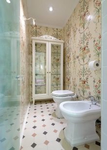 بالنسبة للمرحاض الصغير ، عادة ما يتم اختيار المنتجات ذات اللون الباستيل. سيؤدي اختيار الخزانات البيضاء أو البيج أو الزرقاء إلى تكبير الغرفة بصريًا وإضافة مساحة. ستبدو هذه المنتجات مثالية في الغرف المصممة على طراز بروفانس. سوف تتناسب النماذج أو الخزانات المصنوعة يدويًا المزينة باستخدام تقنية decoupage تمامًا مع مثل هذا التصميم..
