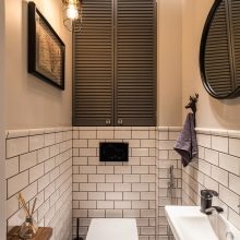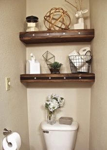 لا يمكن أن تكون الخزانة الموجودة في غرفة المرحاض شيئًا عمليًا فحسب ، بل يمكن أن تكون أيضًا ممتعة من الناحية الجمالية. على أرففه ، يمكنك ترتيب تركيبات زخرفية تتناسب مع نمط الغرفة أو مزهريات الزهور أو إطارات الصور ، أو تعليق اللوحات المطرزة ، أو الملصقات ، أو الزينة..