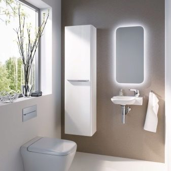 - خزانة خلف المرحاض. سيسمح لك اختيار مثل هذا النموذج بتحرير مساحة إضافية بالقرب من الحوض أو على الرفوف..
