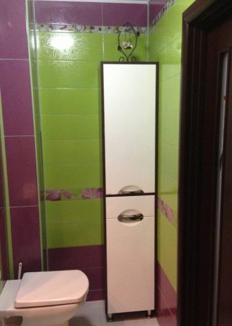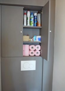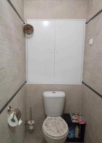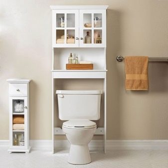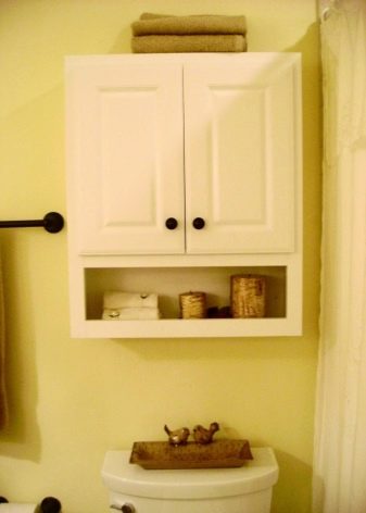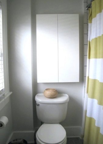 - خزانة خلف المرحاض. سيسمح لك اختيار مثل هذا النموذج بتحرير مساحة إضافية بالقرب من الحوض أو على الرفوف..