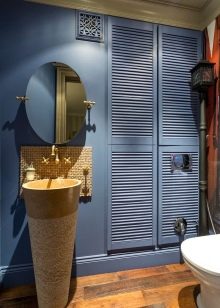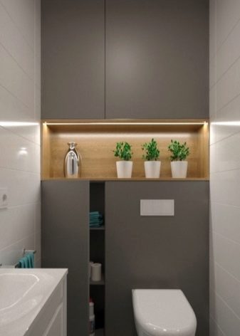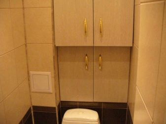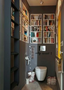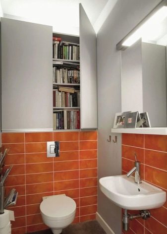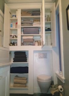 في المرحاض ، يتم تثبيت الخزانات حسب حجم الهيكل نفسه وشكله والغرض منه. من المهم مراعاة حجم الغرفة والطراز الذي صنعت به..