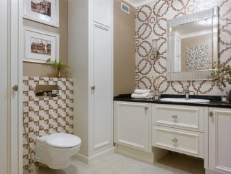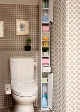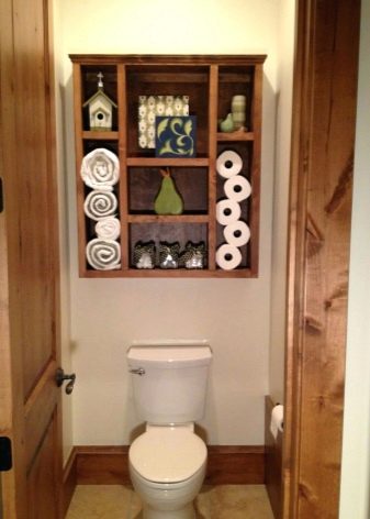 لا يمكن أن تكون الخزانة الموجودة في غرفة المرحاض شيئًا عمليًا فحسب ، بل يمكن أن تكون أيضًا ممتعة من الناحية الجمالية. على أرففه ، يمكنك ترتيب تركيبات زخرفية تتناسب مع نمط الغرفة أو مزهريات الزهور أو إطارات الصور ، أو تعليق اللوحات المطرزة ، أو الملصقات ، أو الزينة..