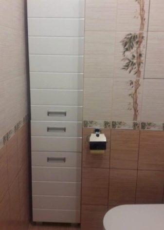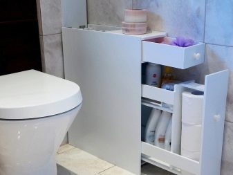 - هياكل قابلة للسحب. يتيح لك اختيار هذه المنتجات توفير مساحة ، لذلك يُنصح باستخدامها في مرحاض صغير. عادة ما توجد خزانة قابلة للطي بجوار المرحاض – إنها مريحة للغاية وعملية.