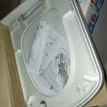 - الفجوة – مقعد مرحاض مستطيل الشكل مصنوع من البلاستيك الأبيض المقاوم للحرارة. يتكون من مقعد مرحاض وغطاء. للتثبيت ، يتم توفير مثبتات مصنوعة من الفولاذ المقاوم للصدأ ، لإغلاق سلس – رافعة صغيرة.