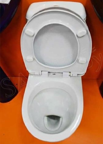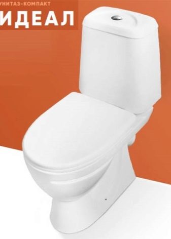 - سانيتا المثالية – نموذج آخر للإنتاج المحلي مصنوع بشكل نصف دائري مع وعاء حاجب. يبلغ حجم خزان التدفق 6 لترات ، بينما لا يوجد زر إضافي لشطف نصف السائل. المدخل السفلي ، المقعد بغطاء. مادة التصنيع هي البورسلين الصحي ، أبعادها 335 × 610 مم ، ارتفاع 765 مم منها 400 مم يسقط على الوعاء. الوزن 27.2 كجم ، يتوفر لون واحد فقط – أبيض.