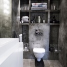 لا توجد طريقة لتكدس الغرفة ، بل يجب توخي الحذر عند اختيار الرفوف. إذا لم تكن هناك مساحة كافية ، يكفي وضع رف صغير جدًا لأكثر الأشياء الضرورية. يجب أن تكون السباكة ذات حجم صغير. سيخلق المرحاض المعلق بصريًا شعورًا بوجود غرفة أكثر اتساعًا..