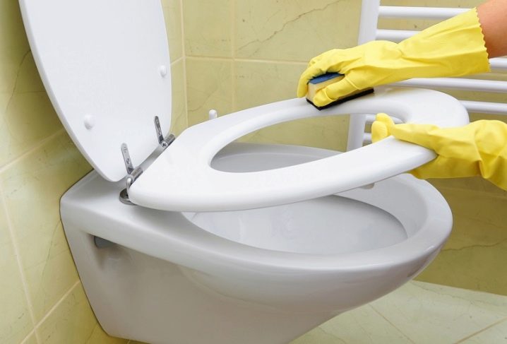 نظرًا لأن أغطية المراحيض غالبًا ما تكون مصنوعة من البلاستيك أو duraplast ، فإنها تتمتع بجميع المزايا والعيوب المميزة لهذه المواد.. الصيانة الصحية لمثل هذه الأسطح ليست صعبة للغاية ، ولكن إذا بدأت الموقف ، فسيكون تنظيف المنتج أكثر صعوبة.. في أغلب الأحيان ، يواجه أصحاب الحمامات تغيرًا في لون البلاستيك. ليس من السهل غسلها من الصفرة التي تحدث تحت تأثير حساب التفاضل والتكامل وأملاح الكالسيوم..