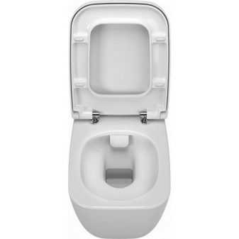 بالنسبة للمراحيض ذات الأواني المربعة والمستطيلة ، يجب عليك اختيار أغطية بالشكل المناسب ، بهندسة أوضح.